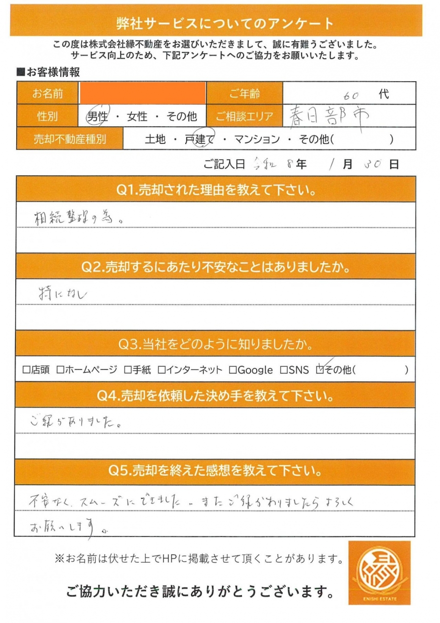 今回の売却理由は、相続によって共有名義となった不動産の整理です。